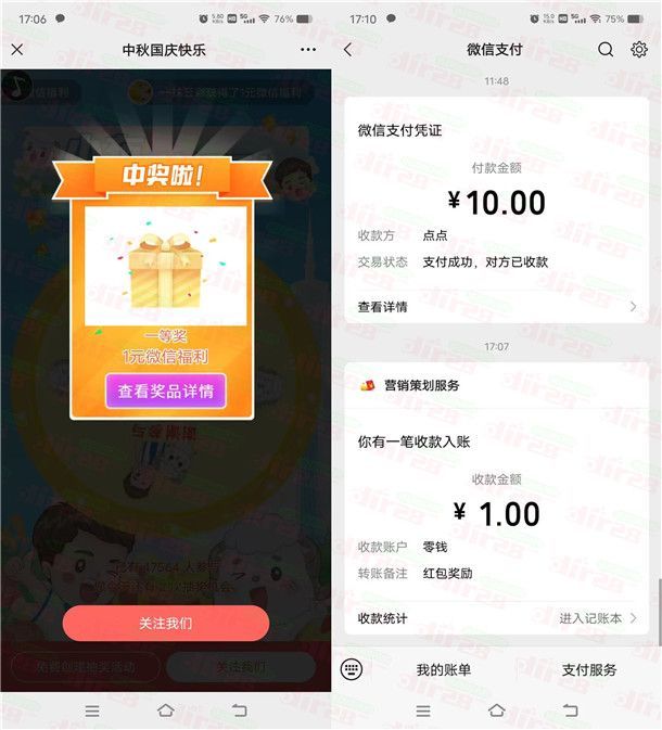 中国广州发布国庆送福利抽微信红包 亲测中1元推零钱