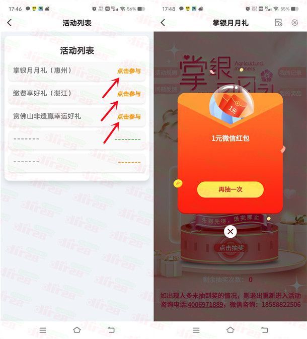 小编提示:全国都可以去,部分用户如果提示非受邀就参加不了,微信扫码跳转到中国农业银行APP活动里,里面3个活动都可以去,每支付1.5元可以抽奖1次,支付的钱会原路退回不会反撸,可以中多次红包