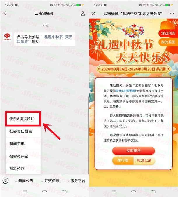 云南省福彩礼遇中秋节模拟投注抽2-58元微信红包 亲测中2元