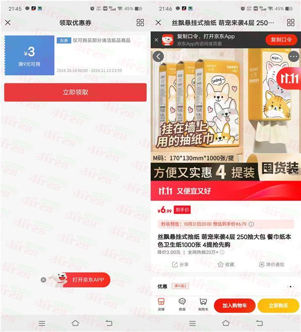 - 7京东直播间简单0.01元撸一包云柔抽纸包邮 限时领红包活动