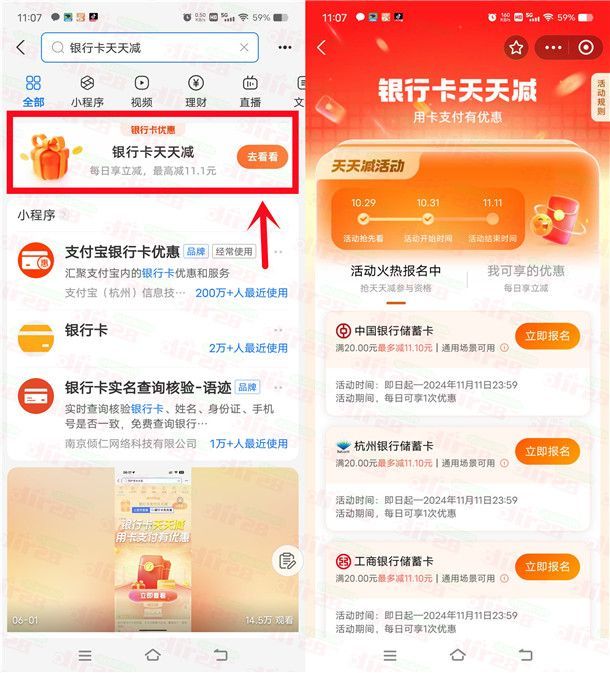 立即参与:打开支付宝APP搜索【银行卡天天减】进去参加