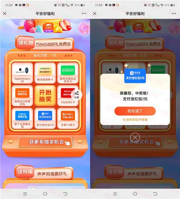 平安好福利抽1元支付宝红包、5元京东卡 亲测中4元秒到