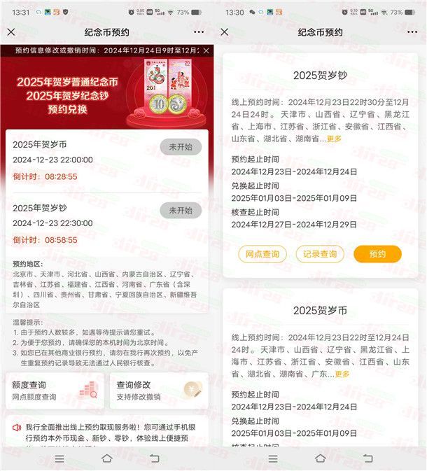 12月23日22点、22点30分各大银行开始预约抢2025年蛇年纪念币、蛇年纪念钞了,需要抢蛇币、蛇钞的可以去,多少会有点利润。