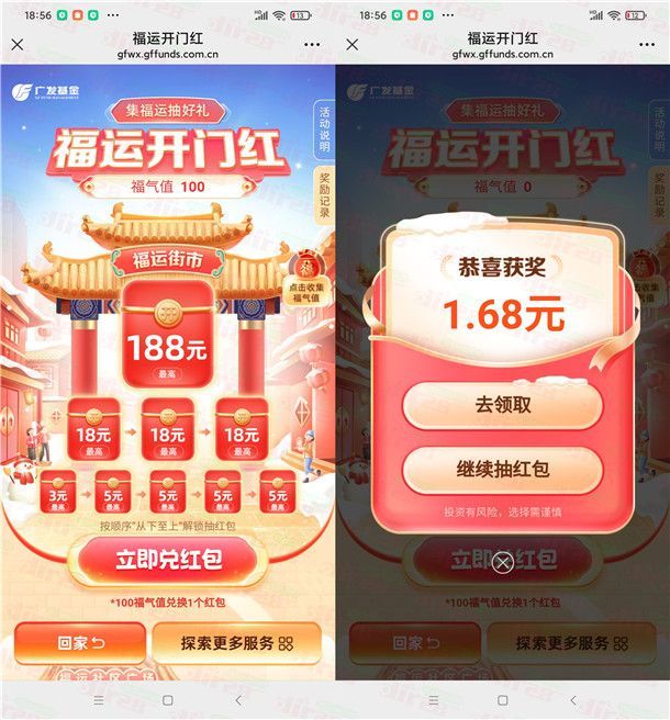 广发基金福运开门红活动抽10万个微信红包 亲测中1.68元