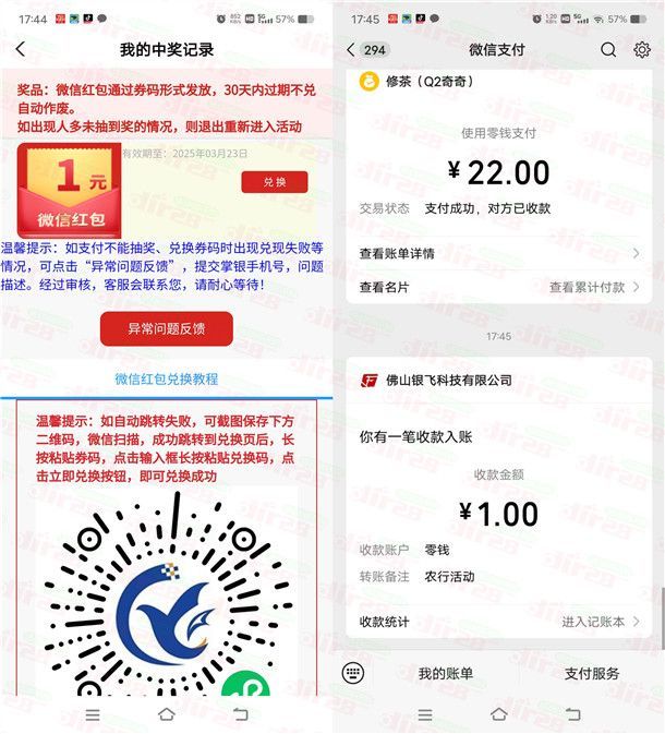 小编提示:微信扫描下面二维码跳转到中国农业银行APP,点【掌银约惠支付有礼】进去,每支付1.08元抽奖1次,每人可以抽3次,支付钱会原路退回,不会反撸,能参加的会必中1个红包