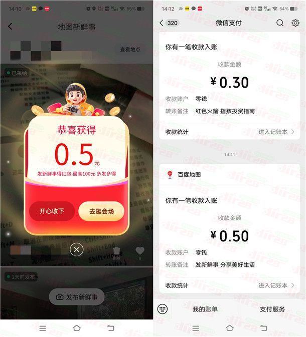 参加百度地图举办的发新鲜事分享美好生活抽最高100元微信红包活动,通过打开最新版本的“百度地图”APP,首页点左上角图标【抽红包】进去,随便拍一张照片后再点击你发布的进去就会弹窗自动抽奖,可以抽多次,每次都有机会中到0.3-100元微信红包,小编测试中到0.5元,可以提现到微信秒推,非必中。