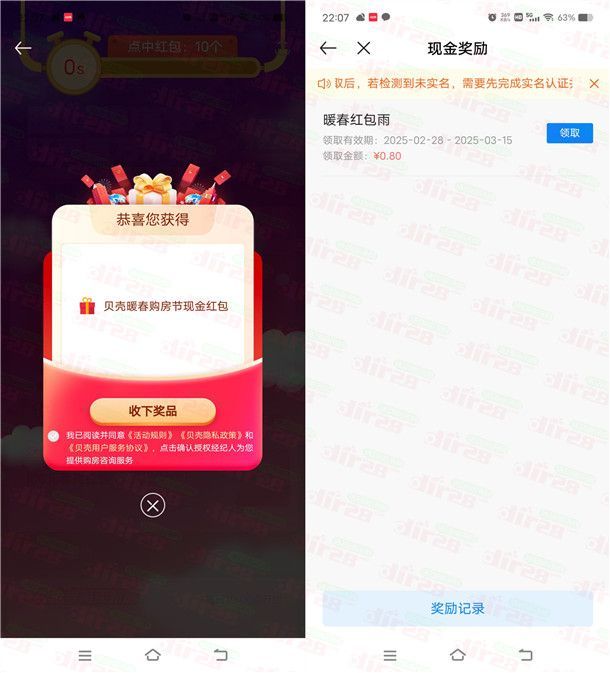 贝壳找房暖春购房节红包雨抽最高1888元现金红包 亲测中0.8元