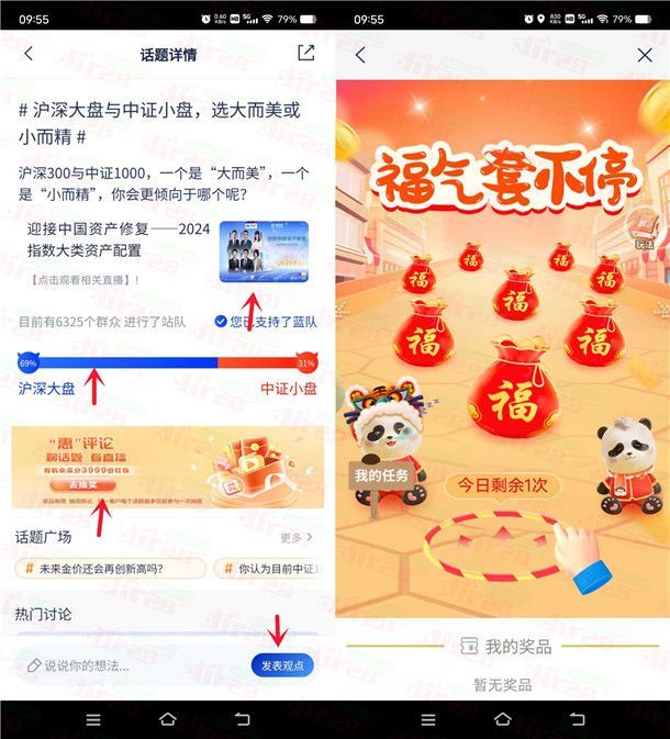 小编提示:微信扫码跳转到浦发银行APP话题页面,先随便点击左右PK一下,再点击图片进去直播间退出来,然后在话题详情页面随便评论一下,就可以点击图片进去抽奖,刚中1.18元微信立减金,非必中