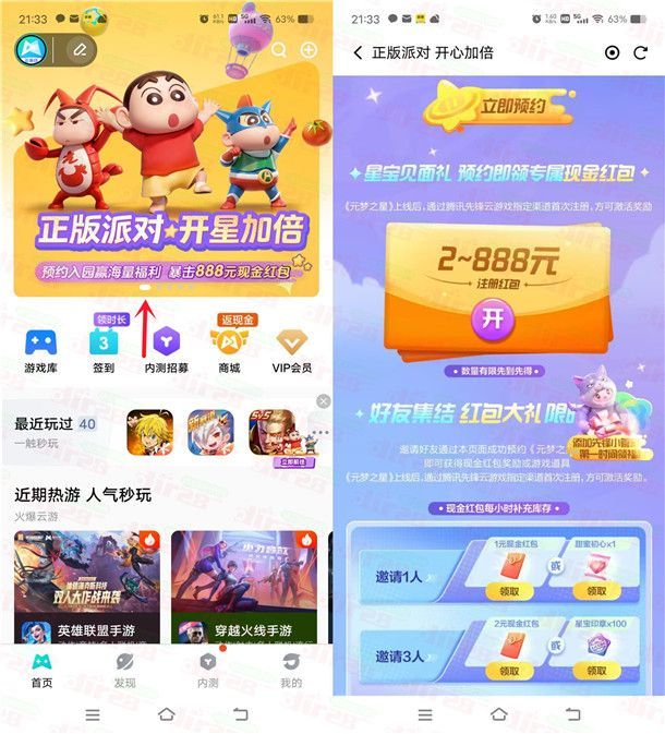 小编提示:打开腾讯先锋APP,首页点顶部滚动图“正版派对开星加倍”进去,预约游戏可以领到2-888元红包(待激活),在12月15日手游上线后在腾讯先锋注册游戏领取