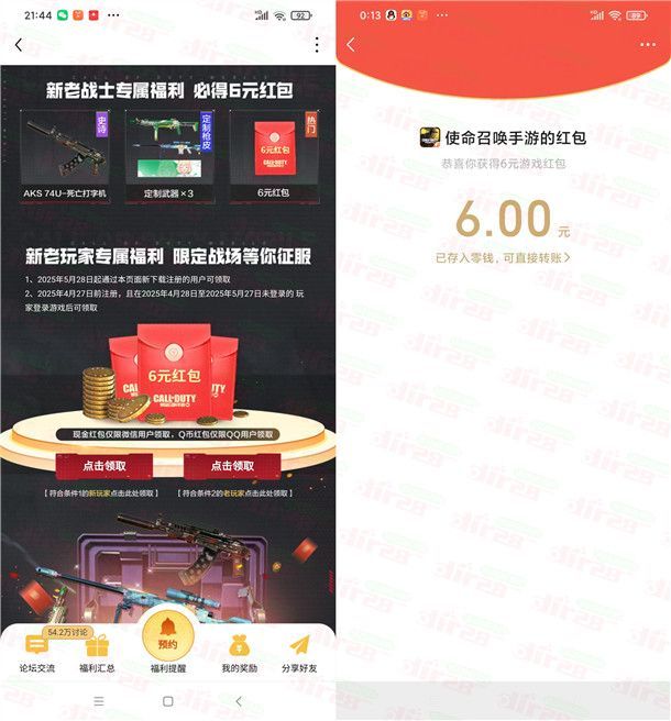使命召唤新老用户直接领6元微信红包、6个Q币 亲测秒到