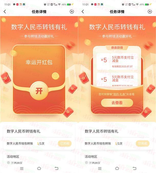 农行数字人民币活动高概率中10元数字人民币红包 亲测中10元