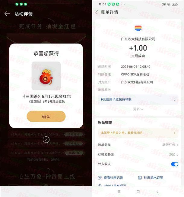 2、打开“oppo游戏中心”APP搜索【三国杀】、【倩女幽魂】、【梦幻西游】进去游戏下载页面点活动进去,假分享都可以抽1次,预约还可以再抽1次,刚中2个1元现金红包,需要手动提现到支付宝秒到,非必中