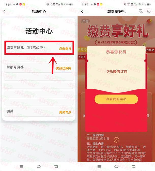 农行缴费享好礼活动必中1-50元微信红包 亲测中2元 全国可去