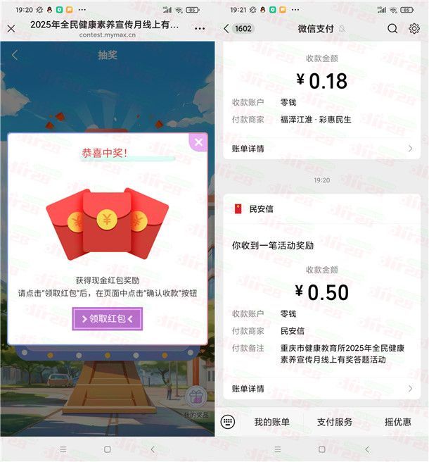重庆健康科普健康素养月答题抽万元微信红包 亲测中0.5元