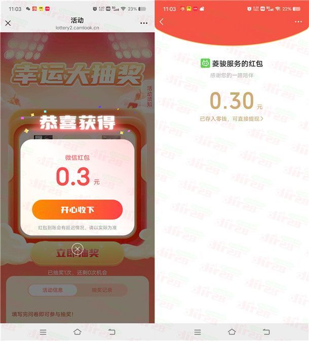 小编提示:答完几道问卷题点底部抽奖(第3题选暂未购车),需要添加企微才可以抽奖,刚中0.3元