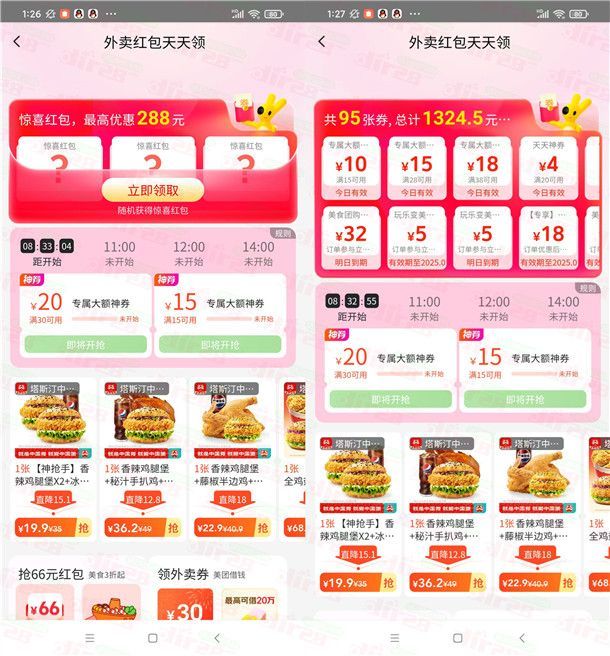 今天11点、14点整:抢满28减18元、满45减25元外卖券