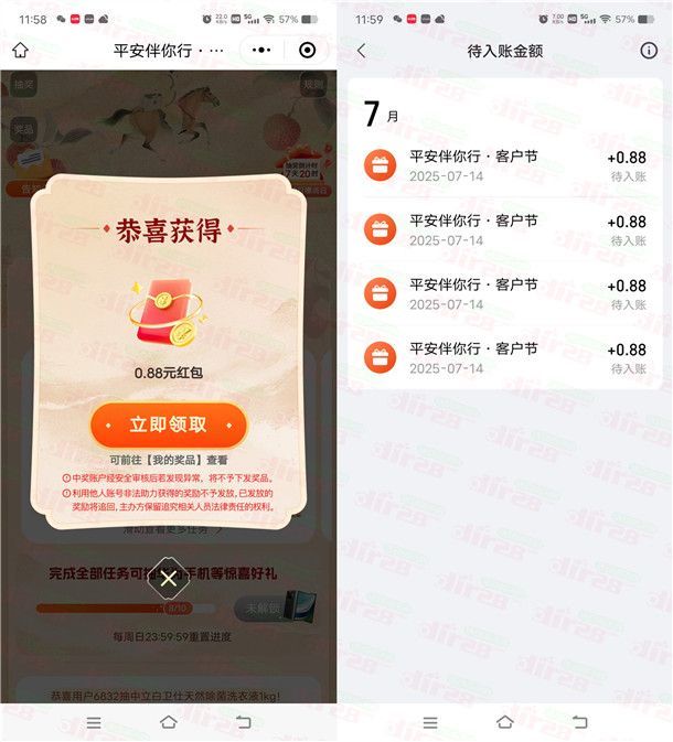 平安金管家抽0.88-1.88元现金红包、实物 亲测中3.52元