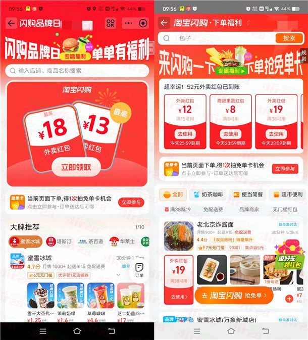 淘宝闪购每天领11-15元饿了么外卖券 可点饿了么外卖使用