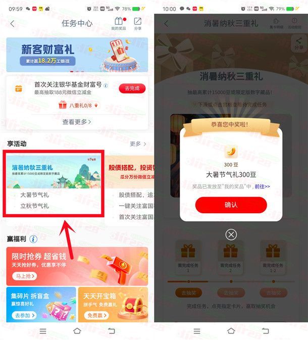 小编提示:打开“中国工商银行”APP搜索【任务中心】进去,在享活动那里点【消暑纳福三重礼】进去,完成1个简单的转账1元的任务抽奖,刚中300个i豆