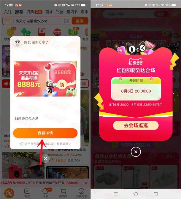 淘宝88超级红包 必中最高8888元现金红包 每天可领