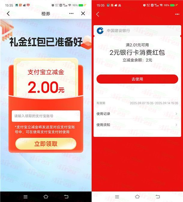 小编提示:打开”中国建设银行“APP搜索【建融家园】进去,在【我的】页面点积分进去,登陆会送200个积分,完成新手任务和热门任务里的简单浏览任务,达到300个积分兑换2元支付宝红包,秒到,如果积分还是不够就只能等攒够了再兑换