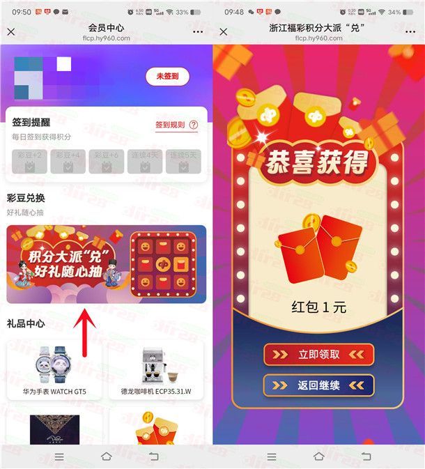浙江福彩积分大派兑抽多个微信红包 亲测中1.5元秒推零钱