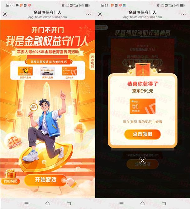 平安人寿金融教育宣传周答题抽1-20元京东卡 亲测中1元