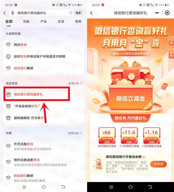 邮储银行微信查询赢好礼抽1.16-66元微信立减金 亲测中1.16元