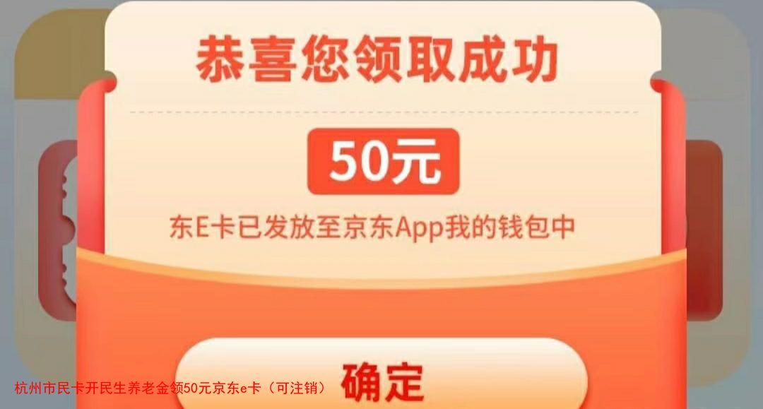 杭州市民卡开民生养老金领50元京东e卡(可注销)