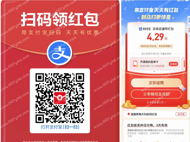 - 7389℃3支付宝最新天天扫码领实体店红包活动 记得每天领