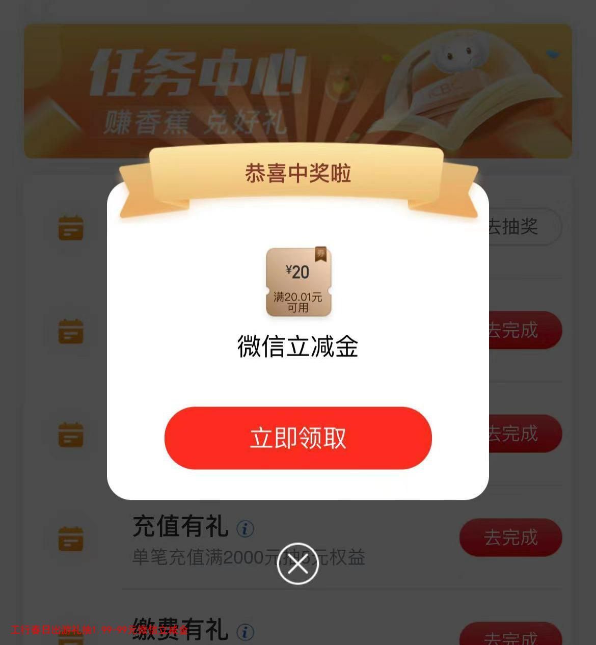 工行春日出游礼抽1.99-99元微信立减金
