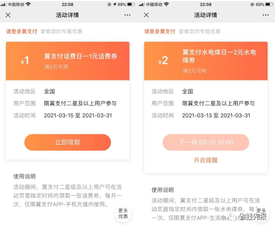 国网在线还有一个支付即时折扣的活动。打开在线国网APP,进入支付页面,任意充值5元水电费,选择招行网通作为支付方式,即刻享受1.88-88元优惠。至少会减少1.88元。小编测试了3.12元,充了5元电。它可以参加全国。如果你需要收费,你可以去。夏季用电量会比较大。节省一点。