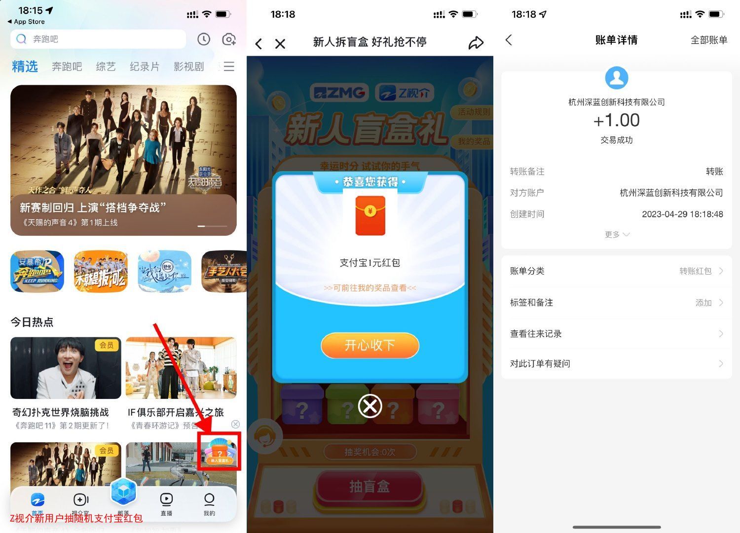 Z视介APP->首页悬浮窗->直接抽随机盲盒,只有抽中红包才有用,填写领取秒到