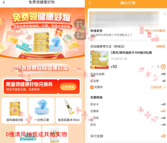 平安好生活APP->首页左上角设置“深圳”->搜索“领赠险”进入->0亓领个保险然后返回页面领五选一实物->在“我的-我的卡券”中激活使用即可