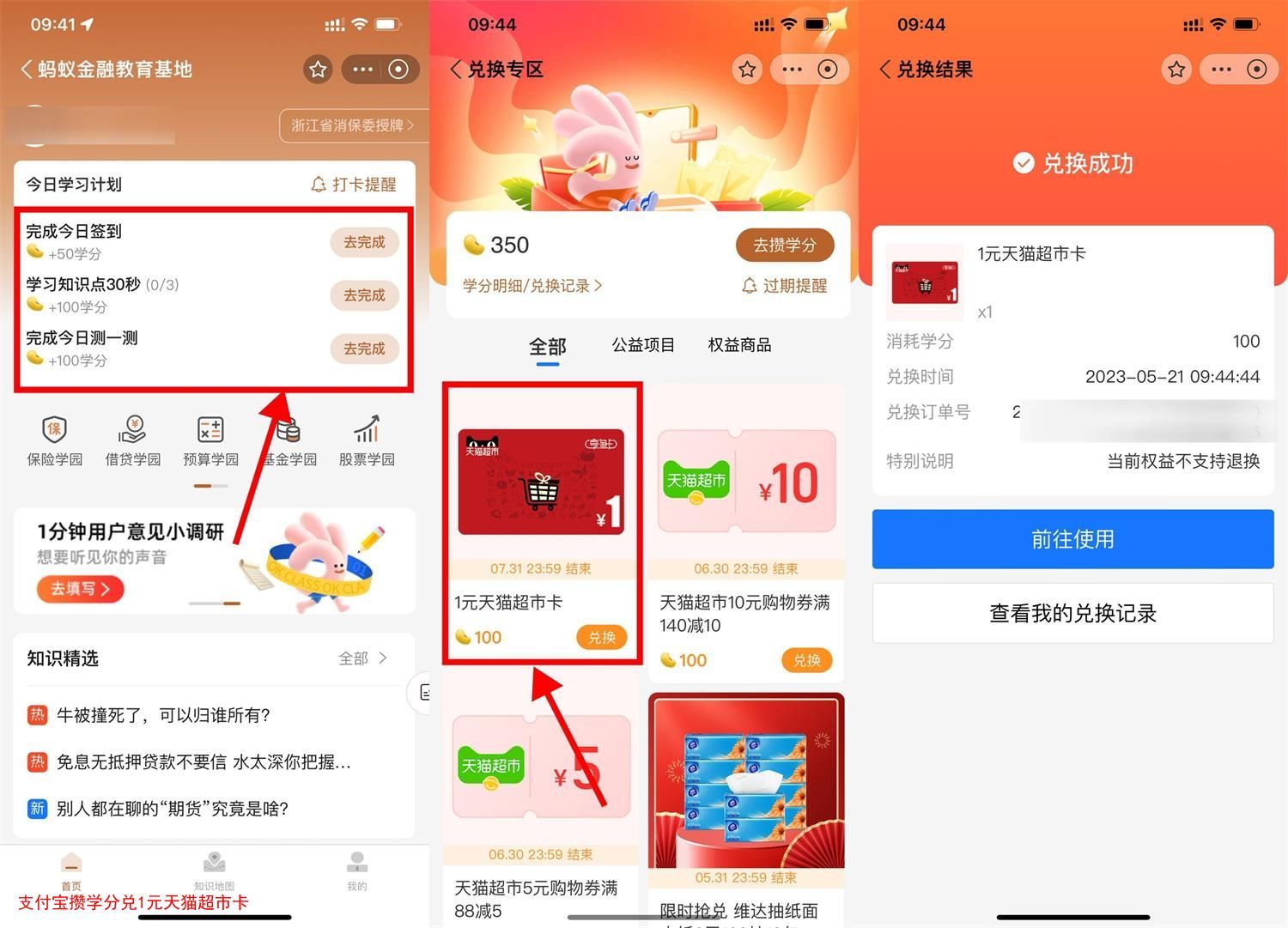 支付宝攒学分兑1元天猫超市卡