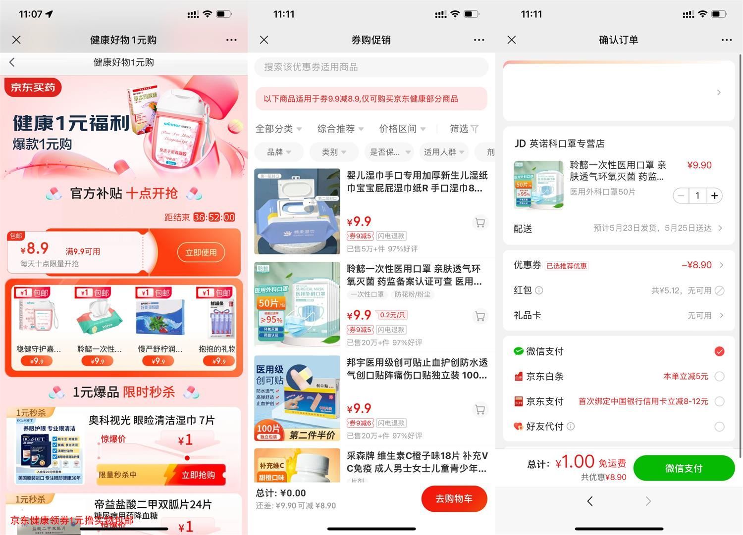 打开活动地址领9.9减8.9元券->打开用券地址任选一个实物即可抵扣券1元包邮到手