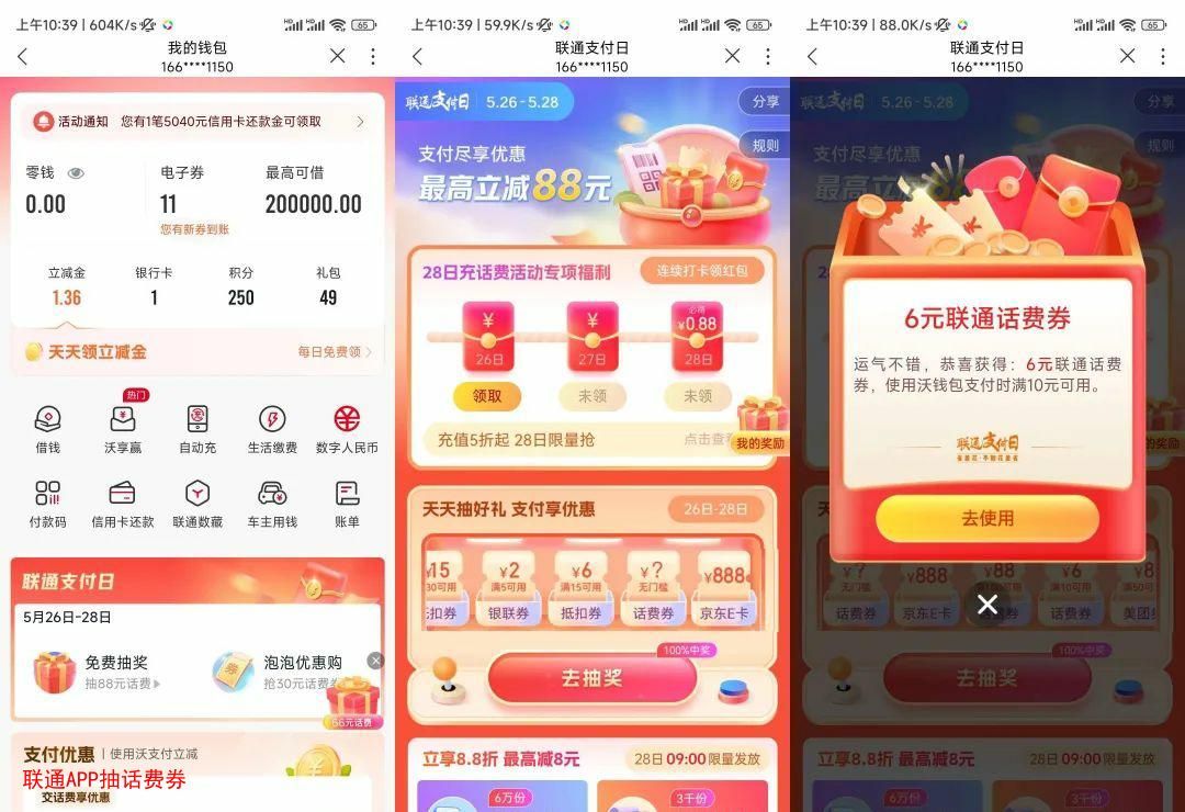 联通APP->我的钱包->联通支付日->抽中话费卷->去充值自定义金额->用沃钱包支付即可0充->具体自测!
