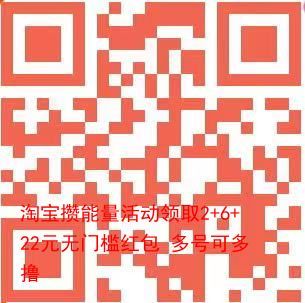 小编提示:打开淘宝APP扫码进去、或者淘宝APP点弹窗进去,在活动里点底部【超级红包】每天完成页面指定的任务可以获得能量,累积达到500、1700、6100能量可以分别领取到2元、6元、22元淘宝无门槛红包