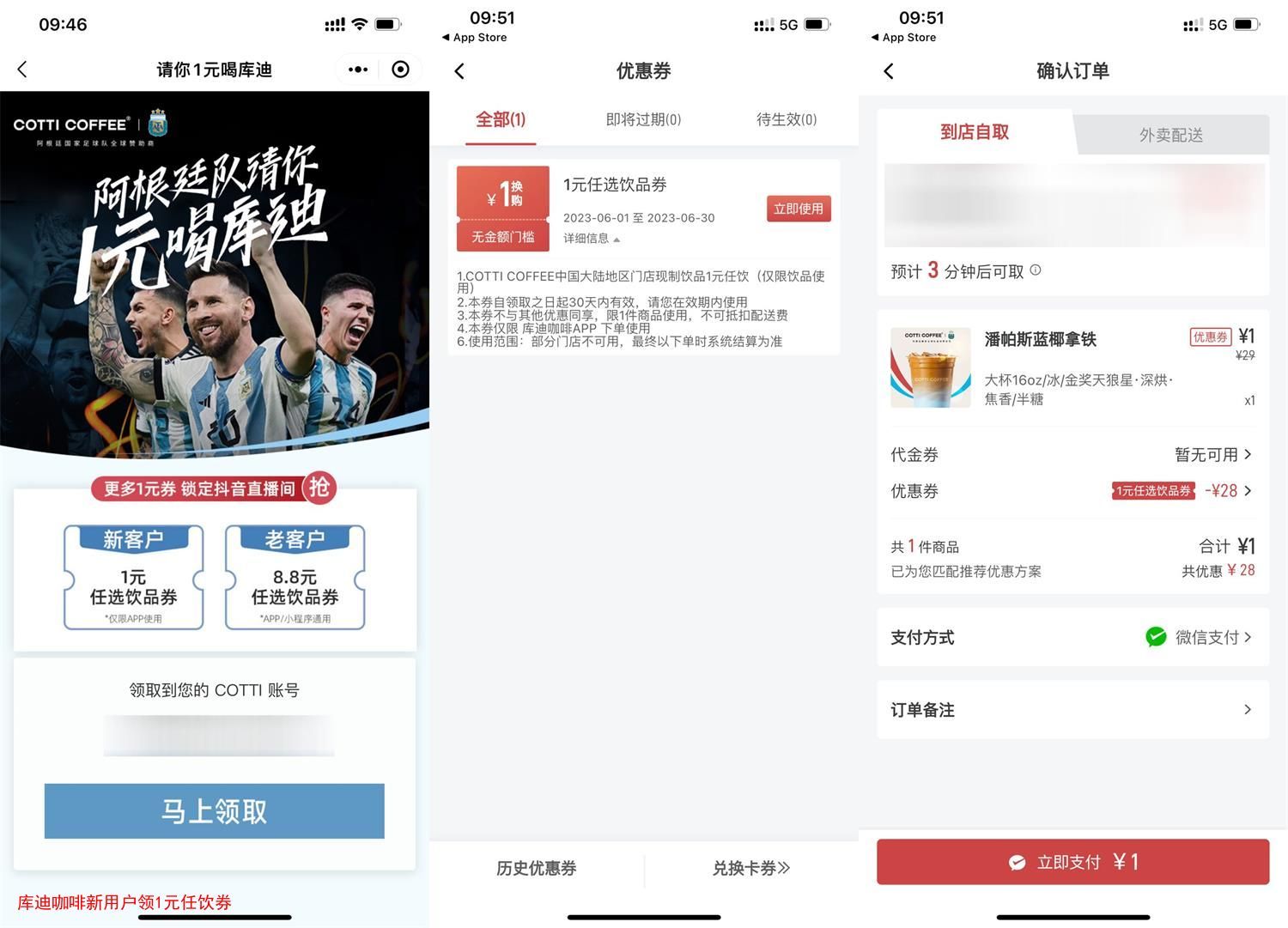 微信扫码进入->新用户直接领1元任饮券->在“库迪咖啡”APP即可使用