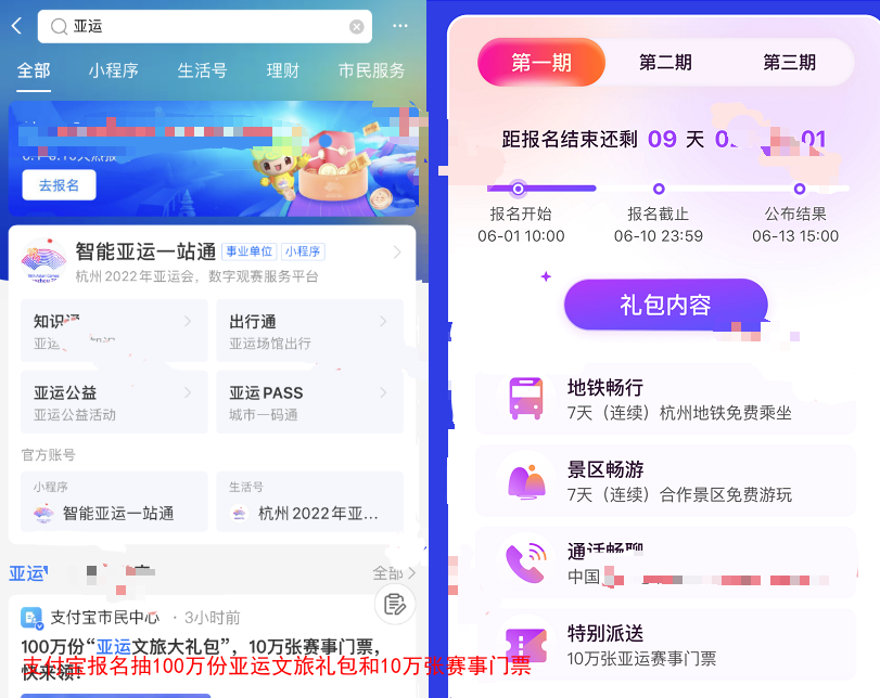 支付宝报名抽100万份亚运文旅礼包和10万张赛事门票
