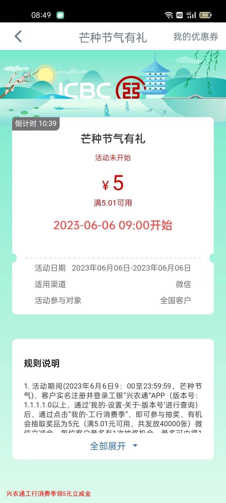 9点 工银兴农通 搜 工行消费季领5元立减金(限量先到先得)——————