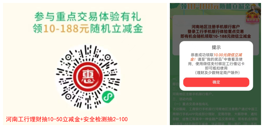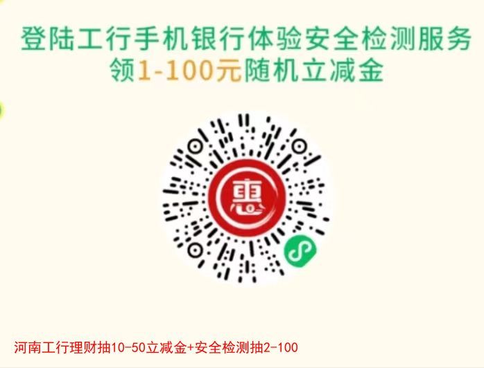 河南工行理财抽10-50立减金+安全检测抽2-100