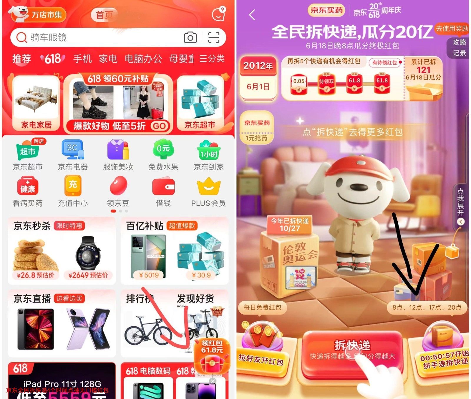京东全民拆快递4个时间点抽无门槛红包