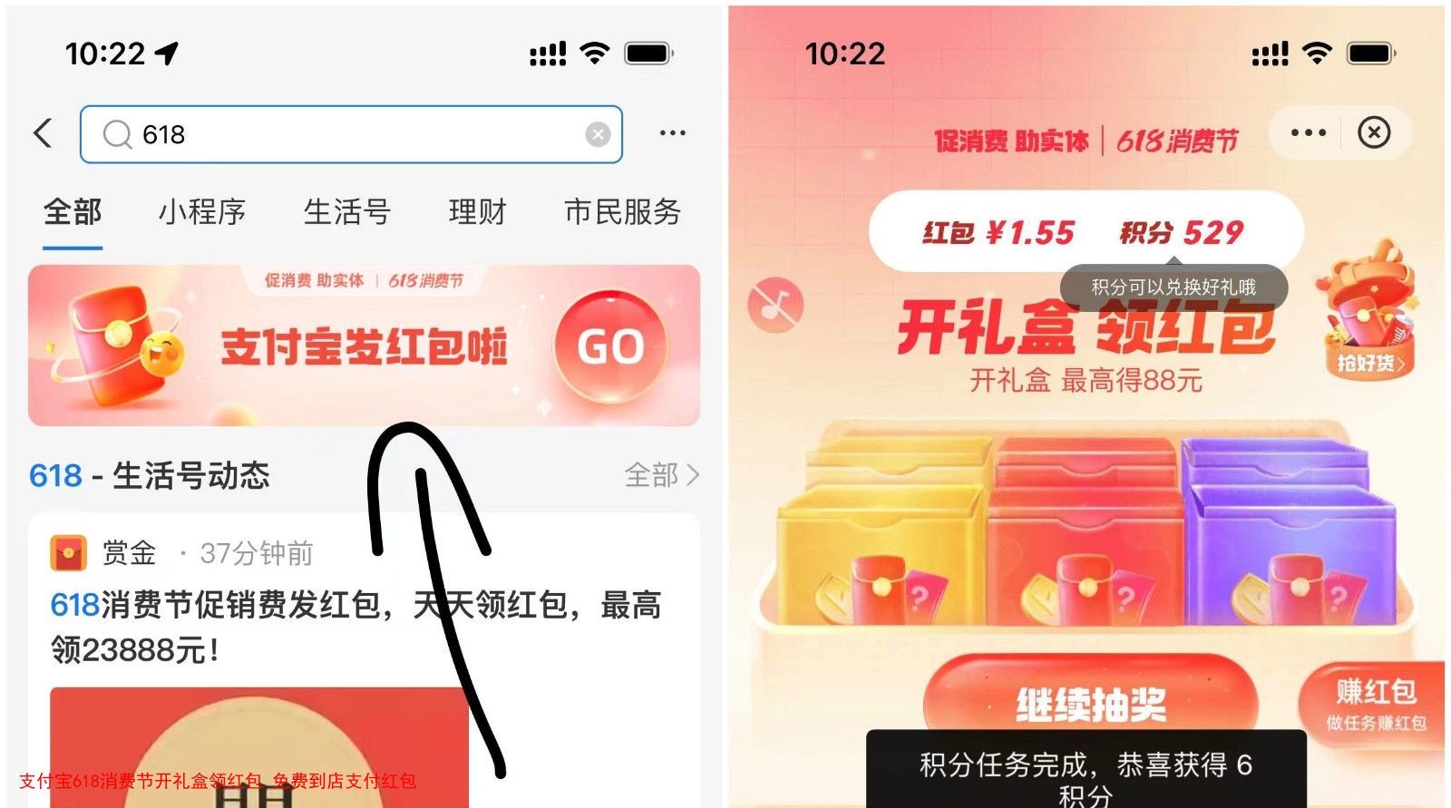 支付宝618消费节开礼盒领红包 免费到店支付红包