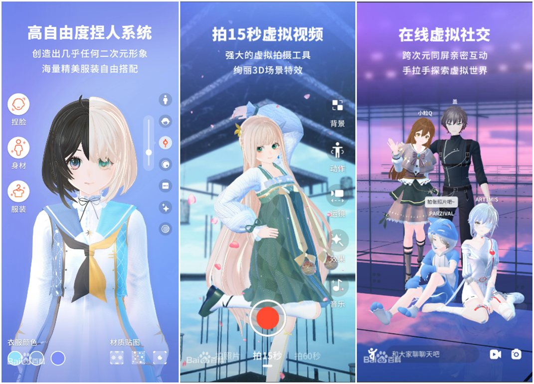 在 Wave Particles 推出的首款虚拟社交软件“Vyou”中,用户可以通过 3D 捏脸功能创建自己的头像,通过手机的前置摄像头和麦克风捕捉面部表情和声音,与虚拟世界进行交流. 社交互动,例如与朋友合影。