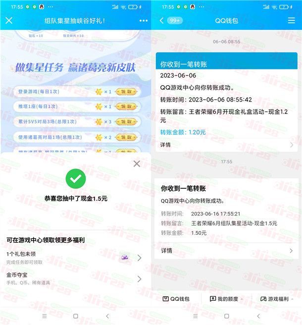 王者荣耀QQ手游集星抽1.5-143元现金红包 亲测中1.5元秒到