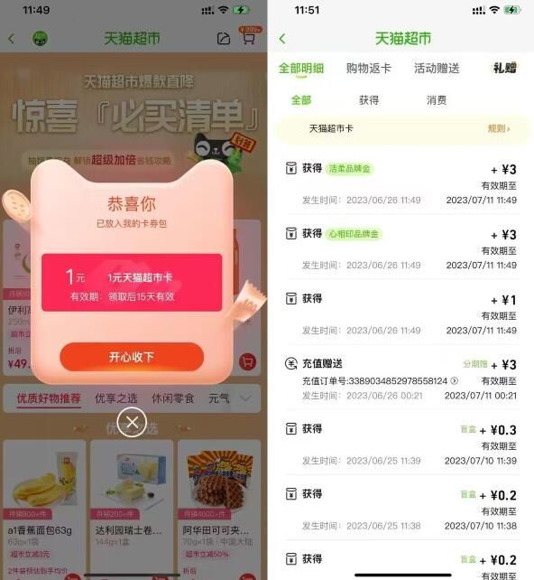 【淘宝直接领取1元天猫超市卡】淘宝APP扫码->下拉刷新3次,直接领1元天猫超市卡!