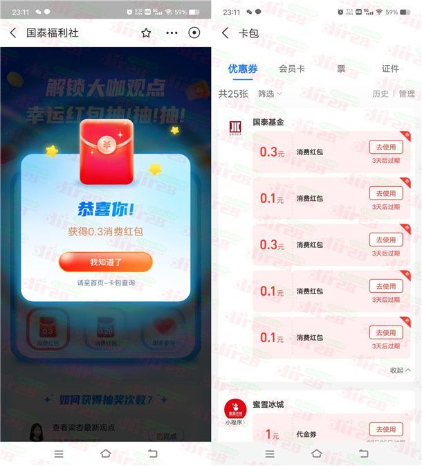 支付宝国泰福利社抽0.1-2.8元支付宝消费红包 亲测中0.9元!可中多次