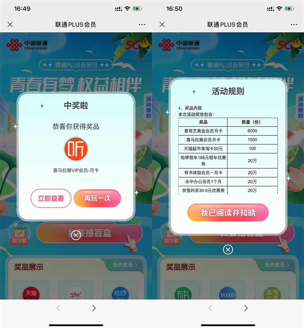 打开地址登陆->默认有1次机会,浏览10秒再得1次机会->只有抽中视频会员才有用,在我的奖品中直充秒到