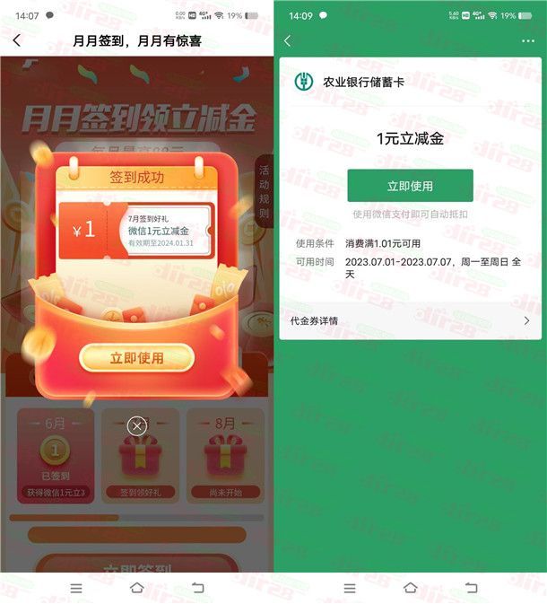 江西农行签到必中1-88元微信立减金 亲测中1元秒到账